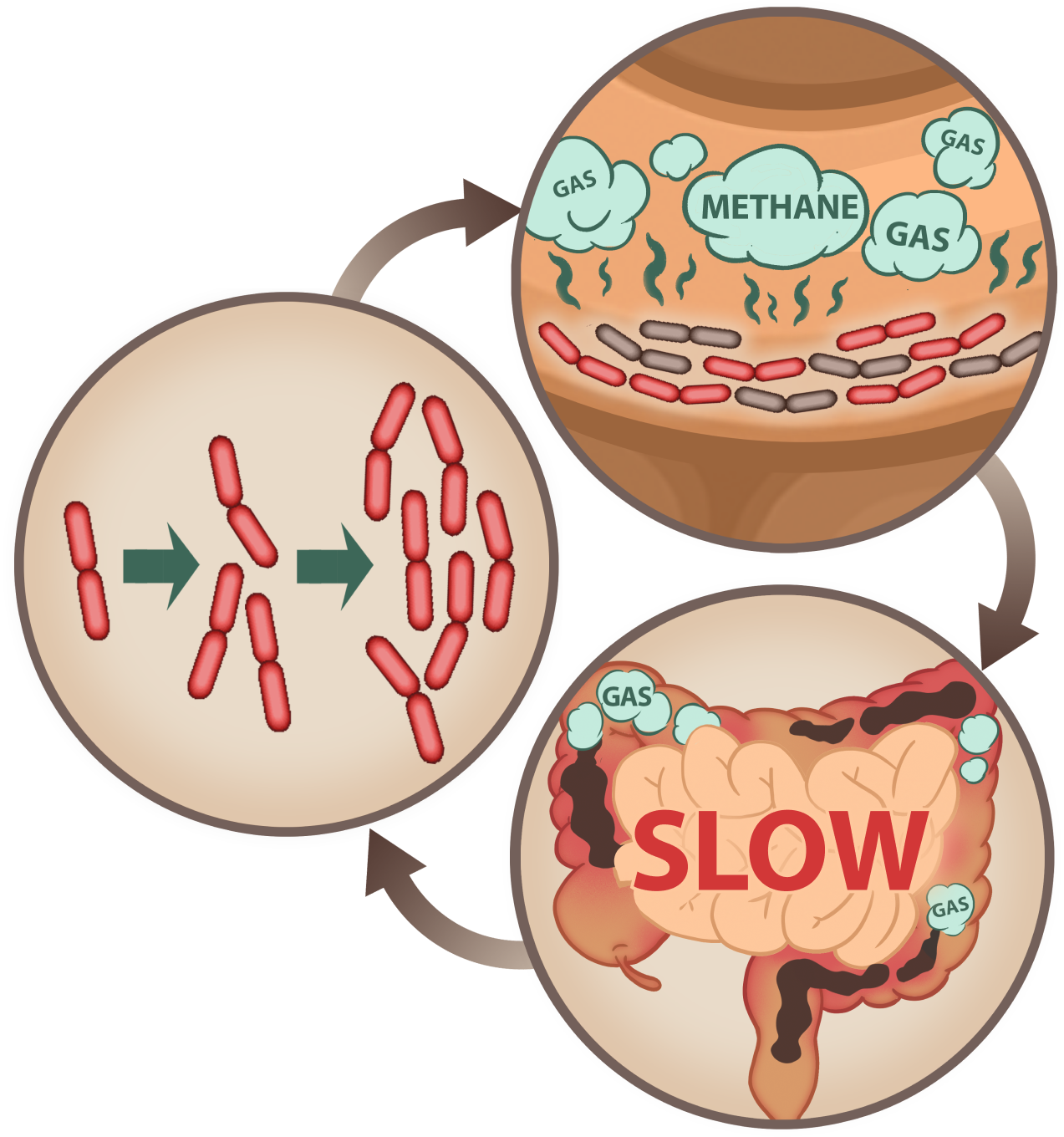 Methane gas damages the sensitive nerves of the gut, slowing the movement of food through the intestines. This slows or even halts your pooping and elimination.